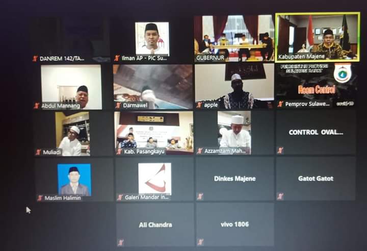 MAMUJU,MATALENSA.ID– Gubernur Sulbar , Ali Baal Masdar melakukan rapat melalui video Conference terkait penyelenggaraan salat berjamaah di Mesjid di tengah Pandemi Covid-19 rapat berlangsung,Rabu (27/05)
