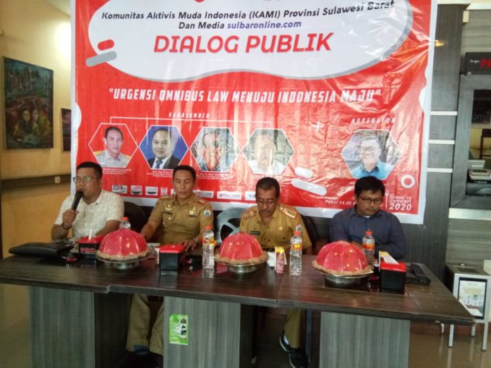 Dialog bertema “Urgensi Omnibus Law Menuju Indonesia Maju” ini menghadirkan 3 narasumber, antara lain, Kepala Dinas Tenaga Kerja Daerah Provinsi Sulbar, Drs. Maddareski Salatin, Kepala Dinas Perdagangan, Perindustrian, Koperasi dan UKM Provinsi Sulbar, Drs. H. Amir Maricar dan Akademisi sekaligus praktisi hukum Sulbar, Dr. Rahmat Idrus.