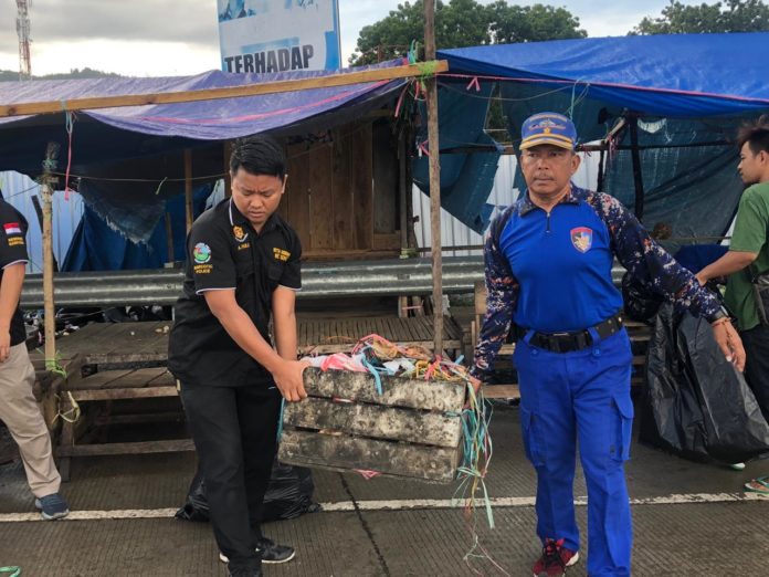 Dalam aksi tersebut, para personil gaubungan TNI/POLRI ini nampak menyisir seluruh jenis sampah yang berserakan di sekitar jalan arteri diantaranya tumpukan kulit durian.