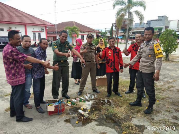 Dikatakan harwanto bahwa selain memasang sanduk larangan peredaran minuman keras dan praktek prostitusi, Puluhan botol minuman keras kami sita kemudian dimusnahkan dengan cara ditumpahkan.