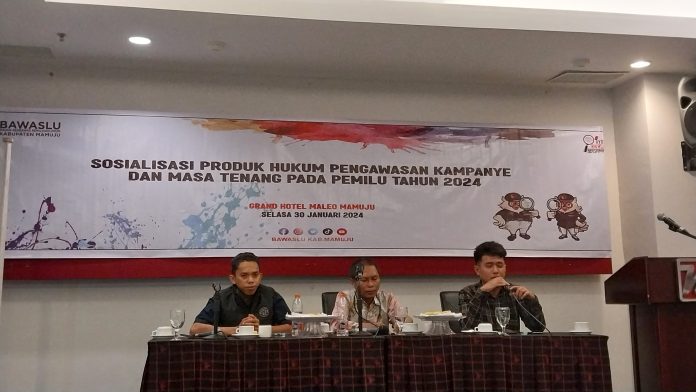 MAMUJU, MATALENSA.ID — Badan Pengawas Pemilihan Umum (Bawaslu) Kabupaten Mamuju melakukan Sosialisasi Produk Hukum Pengawasan Kampanye dan Masa Tenang pada Pemilu Tahun 2024 di Grand Maleo Hotel Mamuju Jl. Yos Sudarso, Kecamatan Mamuju, Kabupaten Mamuju, Sulawesi Barat, Selasa (30/1/24).