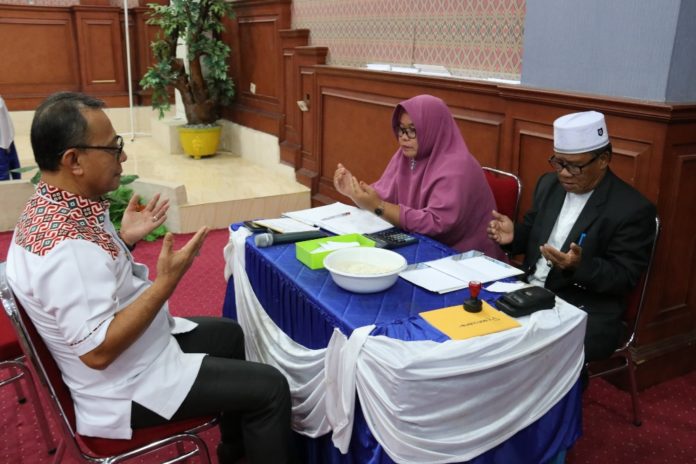 MAMUJU,MATALENSA.ID—Aparatur Sipil Negara (ASN) Lingkup Pemerintah Kabupaten Mamuju diharapkan dapat menjadi contoh terhadap masyarakat dalam pembayaran zakat, ini disampaikan Bupati Mamuju, H. Habsi Wahid pada acara Pemerintah Kabupaten Mamuju berzakat melalui Baznas Kabuapten Mamuju. Yang digelar di ruang Pola Kantor Bupati Mamuju,Kamis (23/05).