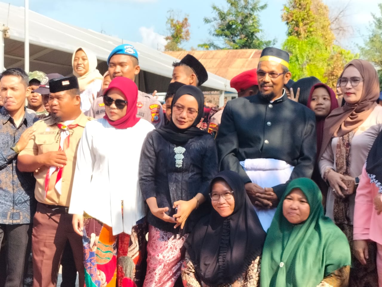 Di bagian depan sejumlah guru juga berbaris rapi dengan busana mereka sendiri. Ada yang memakai kebaya yang di identik dengan Indonesia pada jaman dulu, ada juga yang memakai baju batik.