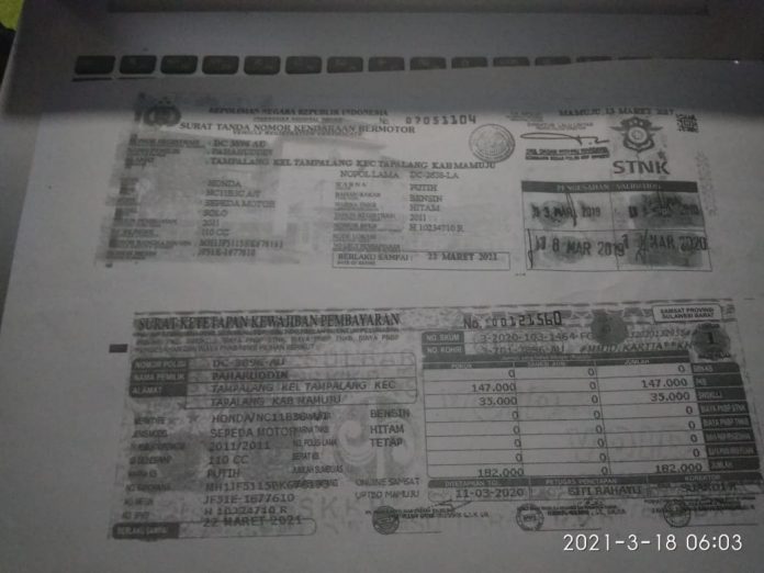 HomeHeadline HeadlineMamujuPeristiwa Berita Kehilangan BPKB Motor Penulis Redaksi March 18, 2021 0 FacebookTwitterPinterestWhatsApp Berita Kehilangan BPKB Motor Honda dengan tipe NC 11 B3C A/T dengan nomor polisi DC 3596 AU atas nama Paharuddin Previous articleACT Sulbar Salurkan Bantuan Biaya Hidup GuruNext articleLagi Tim Tabur Kejati Sulbar Tangkap DPO Kasus Bank Sulsebar Cabang Pasangakyu Redaksihttps://matalensa.id Baca juga Daerah Promosikan Potensi Alam, Kapolda Sulbar Bareng PJU Jelajahi Keindahan Air Terjun Tamasapi Mamuju Warga Binaan Rutan Mamuju Produksi Velg Truck Dan Bus Secara Mandiri Mamuju Pastikan Proses Transparan, Kapolda Sulbar Tinjau Langsung Tes Kesehatan Rekrutmen Polri - Advertisement - Terpopiler Headline Lagi, Ruangan Rawat Pesien RSUD Sulbar Kembali Dibongkar Oleh Pemilik Material Headline Nasib 3500 Orang Tenaga Honorer Lingkup Pemprov Sulbar Akan Diberhentikan. Daerah Rahayu di Sambut Warga Dengan Tagisan Air Mata Headline Pemkab Mamuju Kembali Raih WTP dari BPK RI Sulbar Daerah Hendak Ingin Menggauli Teman Wanitanya, Seorang Pria Ditemukan Tewas di Mobilnya, Load more Share FacebookTwitterPinterestWhatsApp