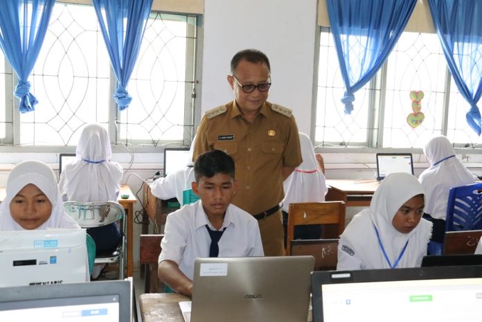 “Hari ini, kita sudah kunjungi beberapa Sekolah, tadi di SD Negeri satu, persiapannya cukup baik, dan di SMP dua persiapan cukup bagus dan sejauh ini tidak ada kendala-kendala dalam pelaksanaan Ujian ini,” terang Bupati, setelah melaksnakan pemantauan Ujian,Senin (22/04).