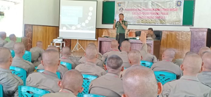 POLMAN,MATALENSA.ID Dandim 1402/Polmas Letkol Arh Hari Purnomo S.Hub.Int.,M.Han berikan materi bela negara kepada peserta pendidikan dan pelatihan kompetensi dasar satuan polisi pamong praja Kabupaten Polman Di Baruga Mammesa Kodim 1402/Polmas,Jum’at (15/11).