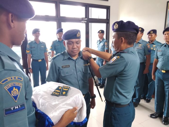 MAMUJU,MATALENSA.ID—Danlanal Mamuju Letkol Laut (KH) Drs. Siangka memimpin upacara kenaikan pangkat bagi anggota Bintara di Mako Lanal Mamuju,Senin (01/04)