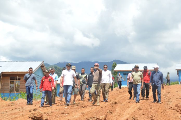 MAMUJU TENGAH,MATALENSA.ID–Danrem 142/Tatag Kolonel Inf. Taufiq Shobri bersama Bupati Mamuju Tengah H.Aras Tammauni didampingi Kasrem dan para Kasi Korem142/Tatag meninjau lokasi perumahan transmigrasi di Tobadak empat,Minggu (6/1)