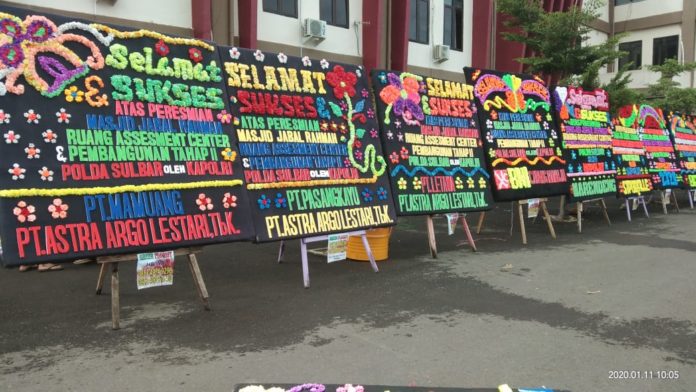 Hal ini ditandai dengan berbagai persiapan dan sejumlah deretan karangan bunga yang telah dibuatkan, nampak deretan bunga tersebut telah berjejer di depan mako Polda Sulbar, Jalan Aiptu Nurman Kalubibing Mamunyu.
