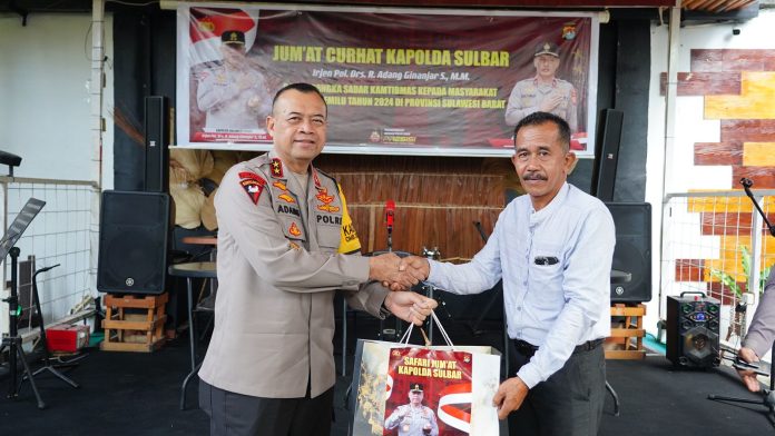 MAMUJU, MATALENSA.ID – Dihujani berbagai aspirasi mulai dari saran, pesan hingga apresiasi dari masyarakat Kelurahan Mamunyu dalam acara Jumat curhat, Kapolda Sulbar Irjen Pol Adang Ginanjar menyatakan sikapnya bahwa akan bekerja maksimal untuk mengatasi persoalan kamtibmas yang ada di Sulawesi Barat khususnya di masa Pemilu 2024, Jumat (26/1/24) di cafe ruang rindu.