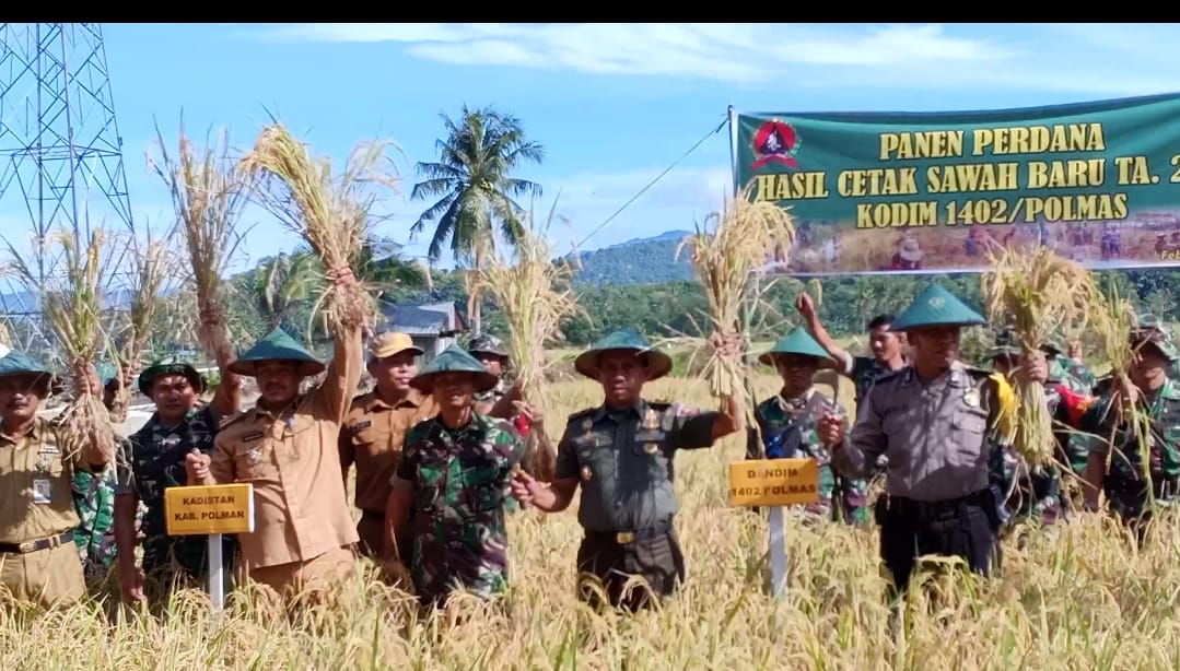 Kegiatan Panen Padi perdana ini merupakan bentuk keseriusan Kodim 1402/Polmas dalam mendukung terwujudnya Swasembada pangan, dimana pada saat selesai proses cetak sawah baru beberapa waktu yang lalu.