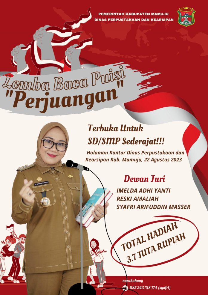 MAMUJU, MATALENSA.ID — Dinas Perpustakaan dan Kearsipan Mamuju bakal menggelar lomba baca puisi pada Selasa, 22 Agustus 2023 mendatang. Kegiatan ini dalam rangka menyemarakkan bulan kemerdekaan, Republik Indonesia yang kini telah memasuki usia ke 78 tahun.