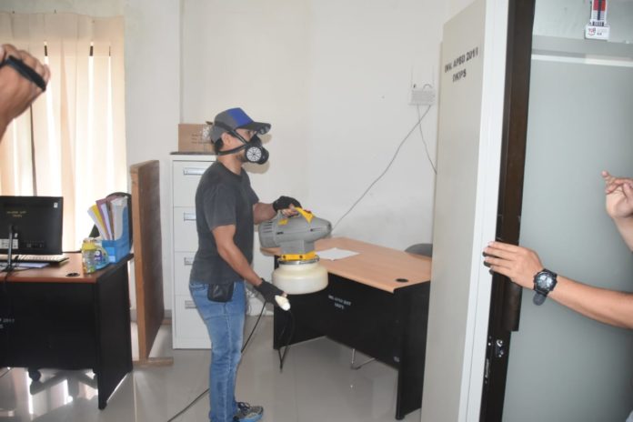 “Manusia harus berikhtiar dan salah satunya dengan melakukan penyemprotan disinfektan ini. Hari ini bukan saja Dinas Kominfo yang melakukan penyemprotan, tetapi juga ada beberapa OPD lainnya,”ungkapnya