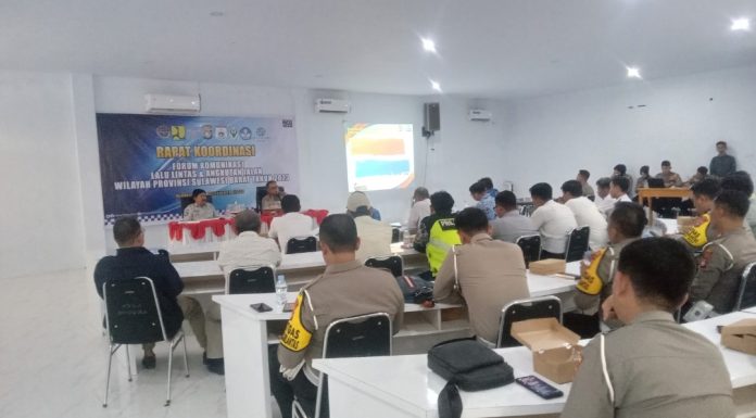MAMUJU, MATALENSA.ID — PT Jasa Raharja Perwakilan Mamuju dan Ditlantas Polda Sulawesi Barat mengadakan Rapat Forum Komunikasi Lalu Lintas (FKLL) di Aula Marannu Polda Sulawesi Barat pada Senin, 18 Desember 2023.