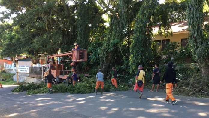Marsaeni mengatakan, hari ini tim DlHK sudah pangkas tiga pohon karena ini adalah permintaan masyarakat yang cukup mengkhawatirkan kepada pengendara maupun warga sekitar dan sudah di perintahkan cepat personil sebanyak 10 orang, kalaupun tidak selesai hari ini akan di lanjutkan sampai selesai.
