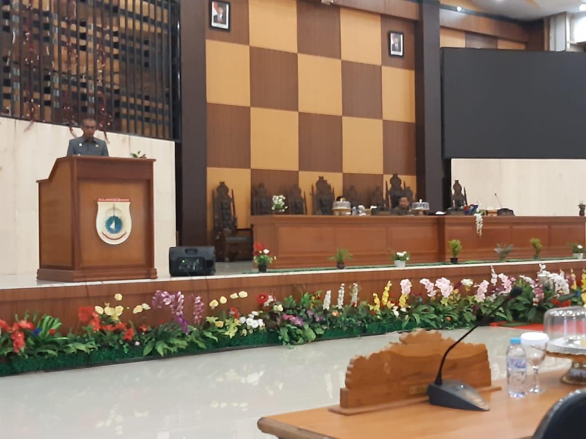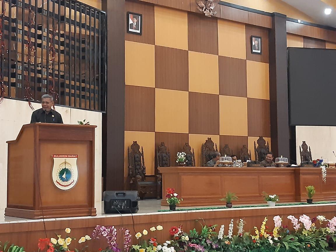 Asisten I Pemprov Sulbar, Muh.Natsir menyampaikan penjelasan Gubernur terkait rancangan Peraturan Daerah Provinsi Sulawesi Barat tentang Perubahan Atas Peraturan daerah Provinsi Sulawesi Barat Nomor 3 Tahun 2013 tentang Sistem Perlindungan Anak.