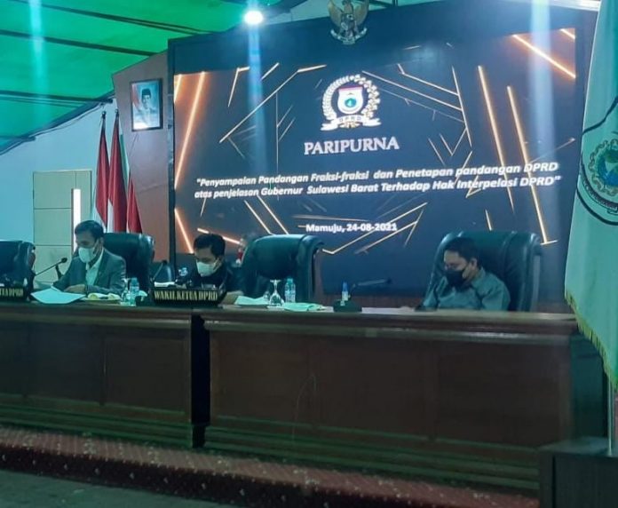 MAMUJU,MATALENSA.ID–Dewan Perwakilan Rakyat Derah (DPRD) Provinsi Sulawesi Barat (Sulbar) menggelar Rapat Paripurna dalam rangka ” Pemandangan Umum Fraksi-Fraksi terhadap Penjelasan Gubernur Sulawesi Barat atas Hak Interpelasi DPRD” yang dilaksanakan di Ruang Rapat Paripurna,Selasa, (24/8)