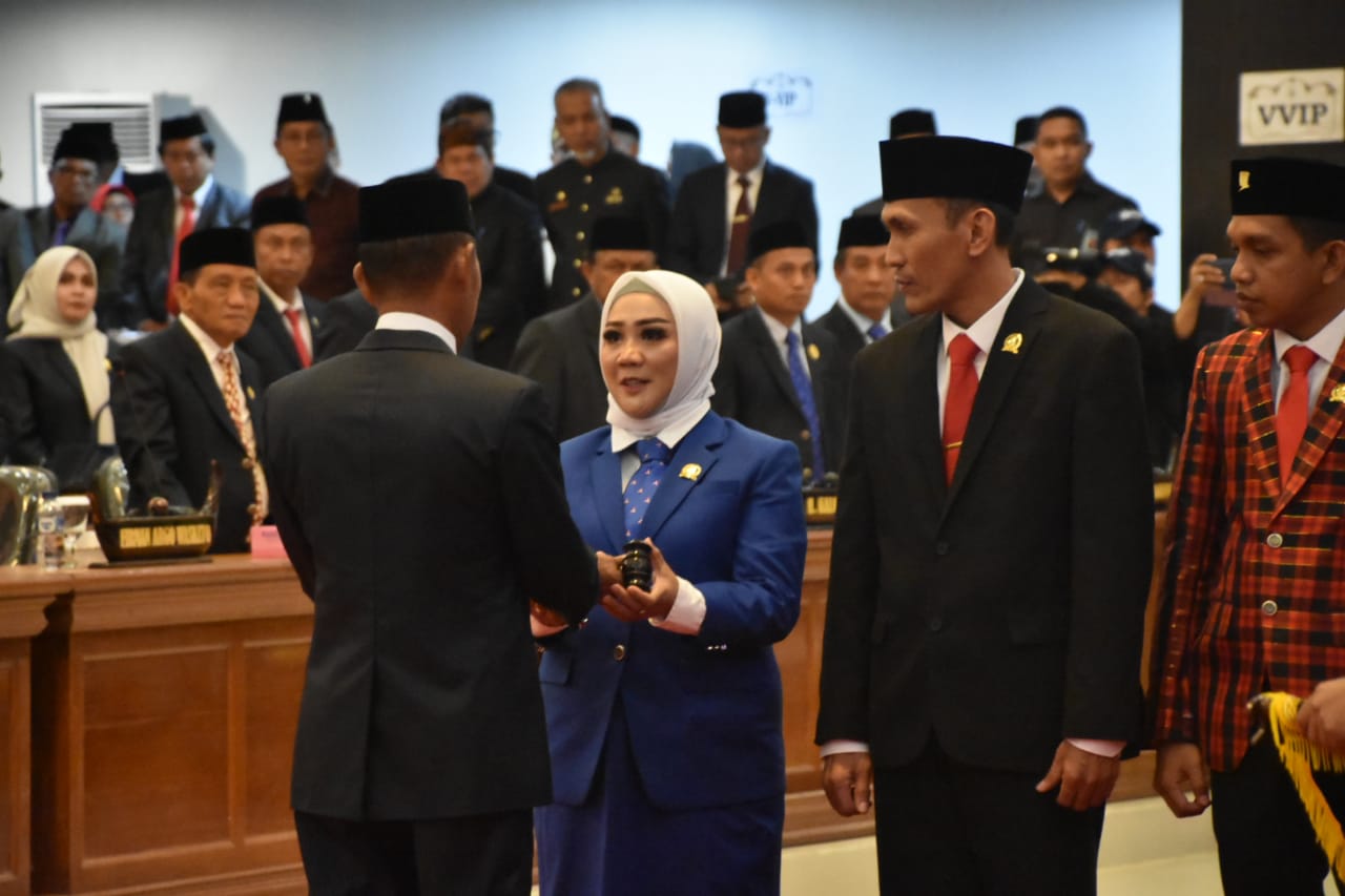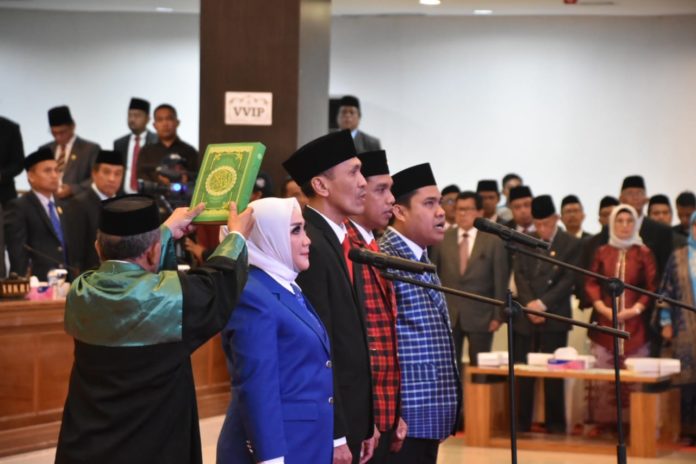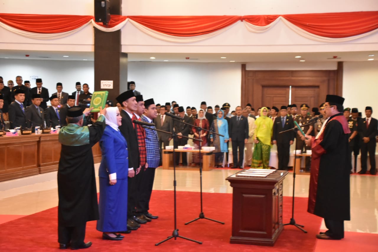 Pelantikan digelar dalam rapat paripurna yang dipimpin Ketua Sementara DPRD Sulbar, St. Suraidah Suhardi, dengan agenda pengambilan sumpah/janji pimpinan DPRD Sulbar masa jabatan 2019-2024.