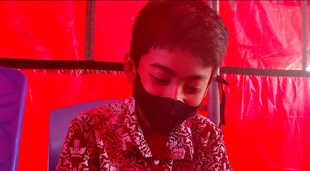 Menerima pertanyaan itu, dengan sedikit tertunduk malu-malu, anak bungsu dari enam bersaudara ini mengatakan dua alasan, yang pertama karena dirumahnya hanya dia yang belum menerima vaksinasi sehingga ia merasa hanya dia yang masih belum aman, yang kedua karena ia tidak lagi mau sekolah on line.