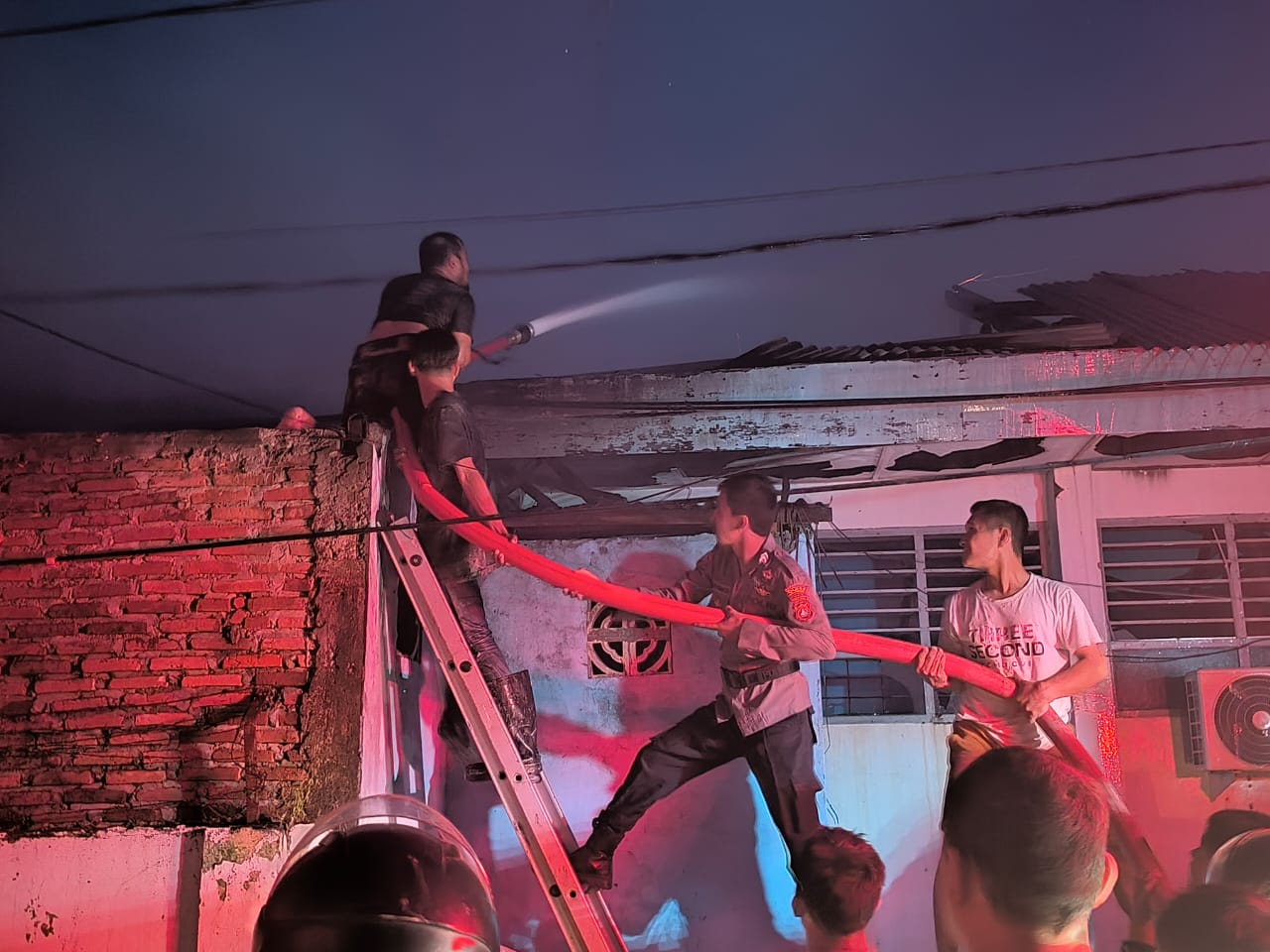 ” Tidak lama kemudian, api tersebut menyebar dengan cepat ke ruangan Laboratorium yang berada pas di samping kantin sehingga menimbulkan Api yang lebih besar dan menyebar ke Ruangan Tata Usaha, dan menyebar Ruangan Guru, Ruang Audio dan Ruangan Komputer serta mushola sekolah,”sambungnya.