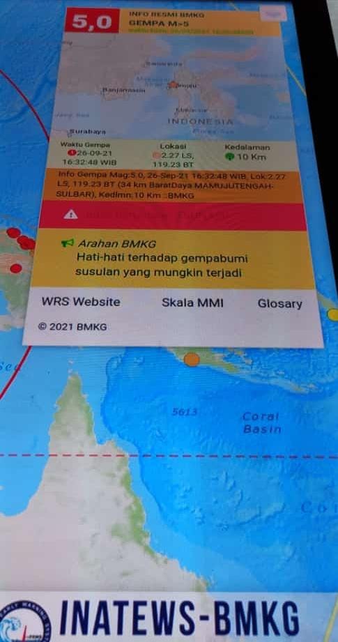 TELAH TERJADI GEMPA BUMI DENGAN PARAMETER SEMENTARA SEBAGAI BERIKUT: