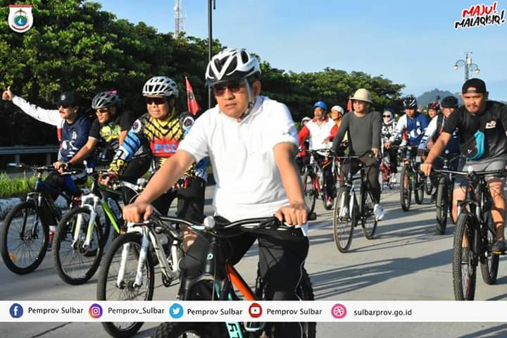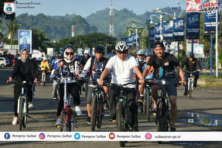 Hal tersebut dilakukan oleh Gubernur Sulbar, Ali Baal Masdar, Kapolda Sulbar, Brigjen Pol. Eko Sampurno, Sekprov Sulbar, Muhammad Idris, unsur forkopimda, dan sejumlah club sepeda di Sulbar , Jumat,( 13/03) mengayuh sepeda dari Kantor Gubernur Sulbar melintasi jalan arteri dan finish di Pantai Manakarra