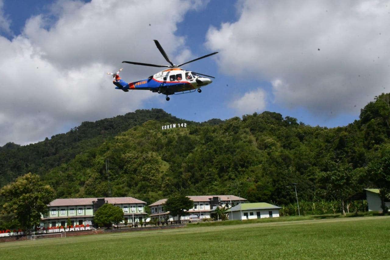 MAMUJU, MATALENSA.ID –– PJ Gubernur Sulbar Prof Zudan Arif Fakrulloh bersama Panglima Daerah Militer XIV Hasanuddin Makassar, Mayjen TNI Bobby Rinal Makmun dan Kapolda Sulbar Irjen Pol Adang Ginanjar menggunakan helikopter meninjau lokasi yang akan dikunjungi presiden RI Joko Widodo, Sabtu (20/4/24).