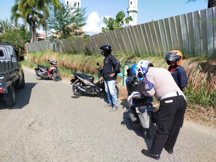 Terlihat dalam kegiatan razia tersebut, para pengendara di berhentikan satu persatu untuk diperiksa kelengkapannya sekaligus di edukasi agar tertib berkendara.