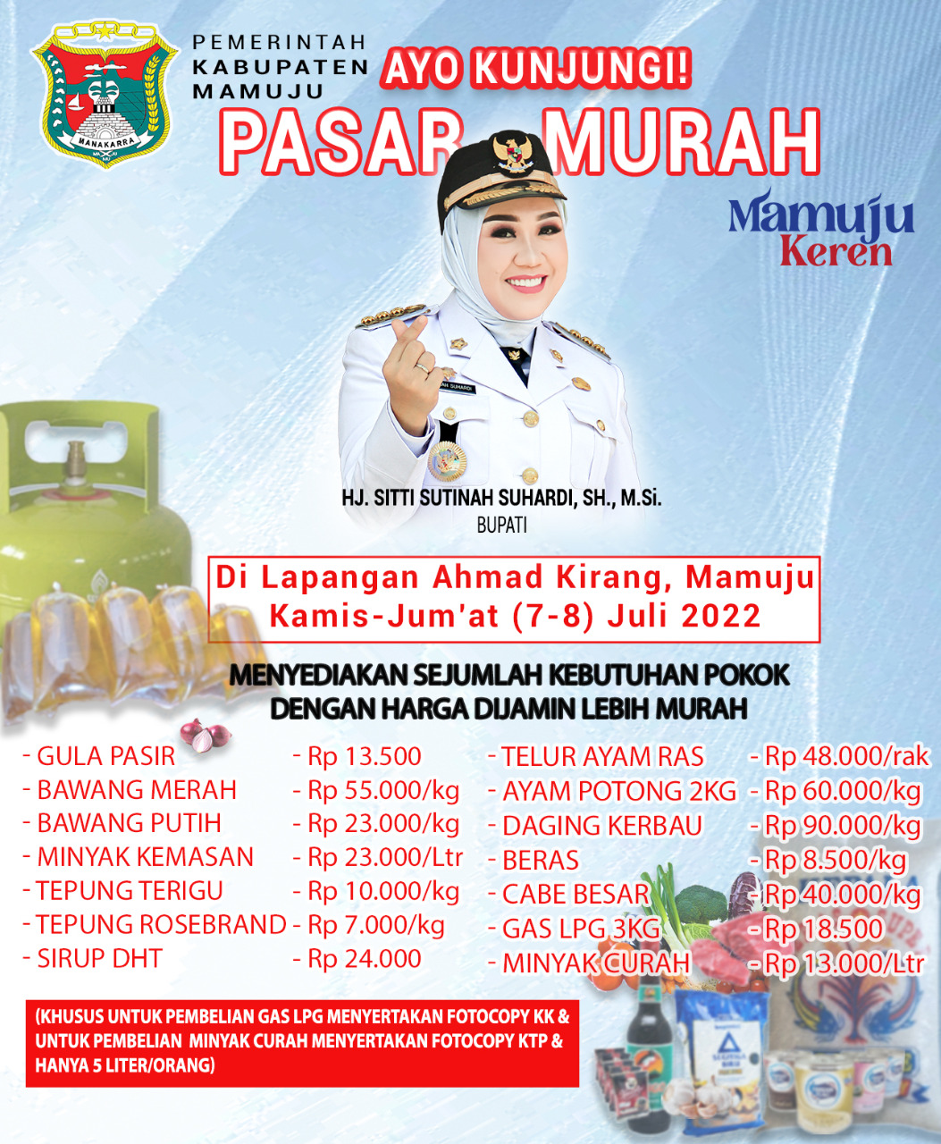 Pasar murah yang diselenggarakan oleh pemkab Mamuju berkerjasama dengan pedagang untuk menekan harga sembako dipasaran.