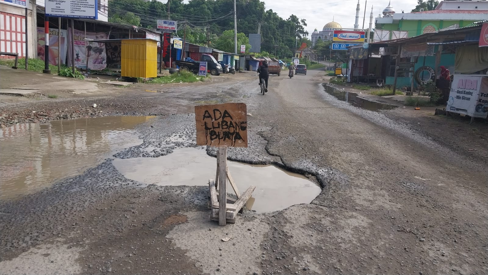 Atas kejadian tersebut, Irwandika bersama pemuda lingkungan Korongana kembali memasang tanda berlubang yang bertulisan “ADA LUBANG BUAYA” terpampang di jalan.
