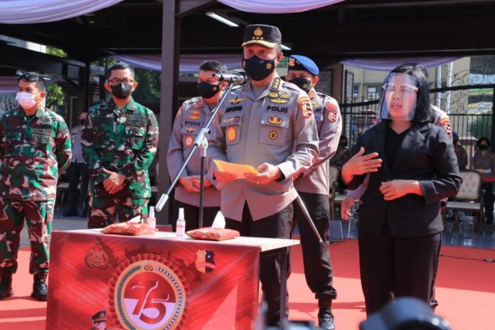 Hal itu sesuai dengan tema yang diusung dalam Hari Bhayangkara tahun ini yakni, ‘Transformasi Polri Yang Presisi Mendukung Percepatan Penanganan Covid-19 Untuk Masyarakat Sehat dan Pemulihan Ekonomi Nasional Menuju Indonesia Maju’.