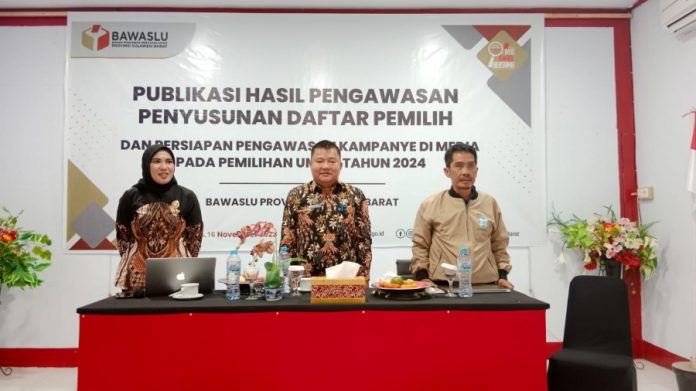 Kegiatan publikasi hasil pengawasan penyusunan daftar pemilih dan persiapan pengawasan kampanye di media pada pemilihan umum tahun 2024 dihadiri puluhan insan pers mulai dari media elektronik maupun media cetak.