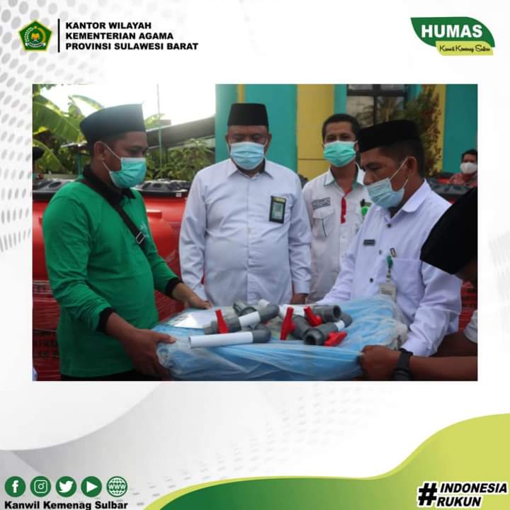 Bersama Kepala Kantor Wilayah Kementerian Agama Sulbar H. M. Muflih B. Fattah, Tim Satgas menyalurkan 46 buah tandon air. Bukan hanya itu, tim satgas juga membagikan puluhan terpal untuk masjid korban bencana gempa.
