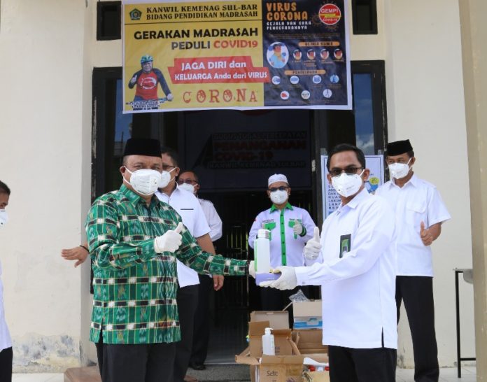 Merespon hal tersebut, Kepala Bidang Madrasah Kanwil Kemenag Provinsi Sulbar sebagai koordinator madrasah satgas covid 19 kanwil kemenag Sulbar H. Muhammad Dinar Faisal membagikan APD pada seluruh kasi pada bidang madrasah, JFT/JFU/ Serta para pramubakti pada bidang madrasah.
