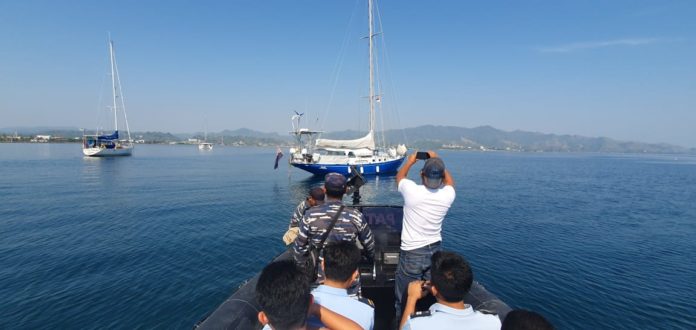 MAMUJU,MATALENSA.ID- Kantor Imigrasi Mamuju bekerjasama dengan Lanal Mamuju melaksanakan Pemeriksaan keimigrasian pada awak Kapal Yacht yang berlabuh di depan Pantai Manakarra Mamuju Sulbar, Kamis (12/09).
