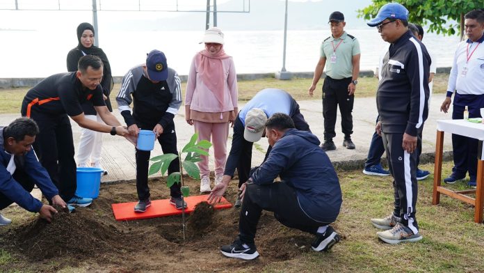 Selain kegiatan olahraga bersama di jalan arteri, Wapres RI K.H. Ma’ruf Amin juga melakukan aksi sosial dengan menanam sukun di sekitar kantor Lanal Mamuju.