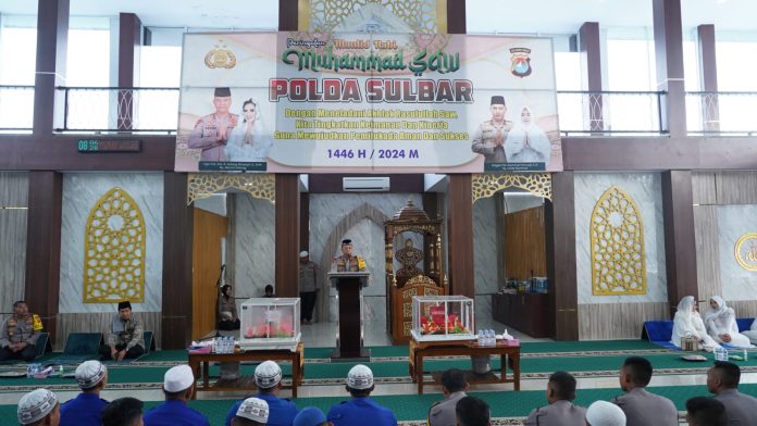 Peringatan Maulid Nabid Muhammad Sallalahu Alaihi Wasallam Polda Sulbar mengangkat tema “Dengan meneladani akhlak Rasulullah, kita tingkatkan keimanan dan kinerja guna mewujudkan Pemilukada yang aman dan sukses.