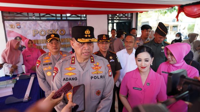 MAMUJU, MATALENSA.ID – Serius dengan penanganan stunting, Kapolda Sulbar Irjen Pol Drs. R. Adang Ginanjar bersama Ketua Bhayangkari Daerah Sulbar Ny Miranti Adang mulai Fokus pada penekanan Intervensi Spesifik dalam penanggulangan stunting.
