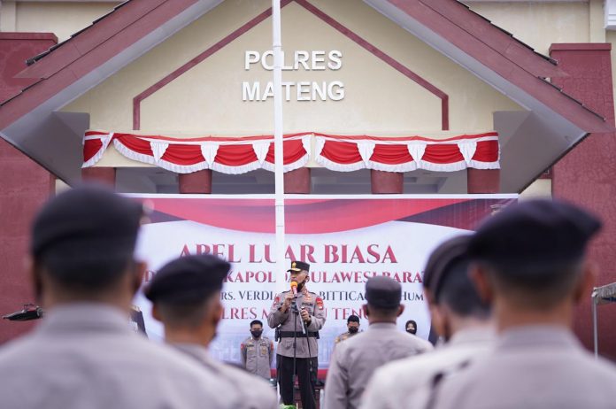 Selain itu, Orang nomor satu di Polda Sulbar ini menegaskan bahwa kedatangannya untuk memastikan kebijakan pimpinan telah dilaksanakan dan dipedomani sesuai aturan di Polres Mateng.