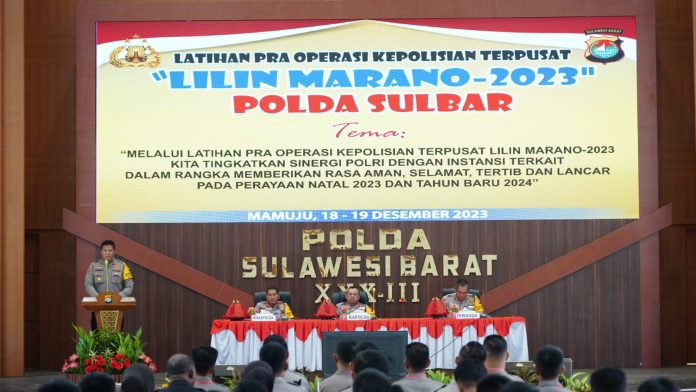 MAMUJU, MATALENSA.ID – Menjelang pelaksanaan operasi kepolisian terpusat dengan sandi Lilin 2023 dalam rangka pengamanan perayaan Natal 2023 dan tahun baru 2024, Kepolisian Daerah Sulawesi Barat yang dipimpin langsung Kapolda Irjen Pol Adang Ginanjar menggelar kegiatan latihan pra operasi Lilin.