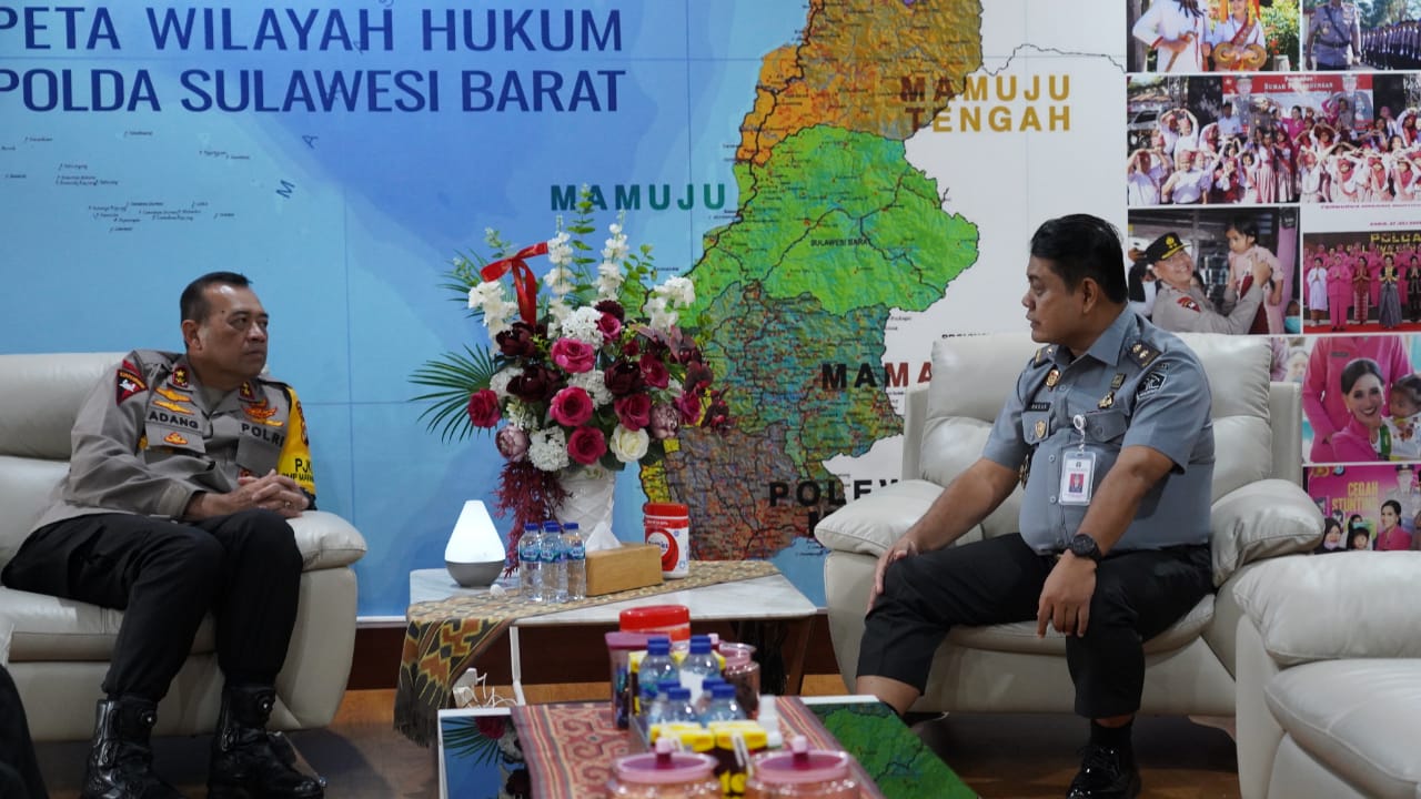 MAMUJU, MATALENSA.ID – Kapolda, Irjen Pol Adang Ginanjar menerima kunjungan Kepala Kantor Wilayah Kementerian Hukum dan HAM (Kemenkumham) Provinsi Sulbar, Pamuji Raharja, Selasa (27/8/24) di ruang kerja Kapolda. Kunjungan tersebut merupakan kunjungan perdana Pamuji Raharja sejak menjabat sebagai Kakanwil Kemenkumham Provinsi Sulbar yang baru.