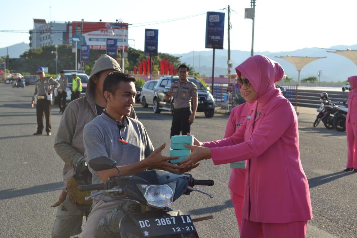 Bahkan masyarakat pengguna jalan di pantai manakarra yang menjadi fokus kegiatan sempat antri menerima pembagian takjil dari para bhayangkari PD Sulbar.