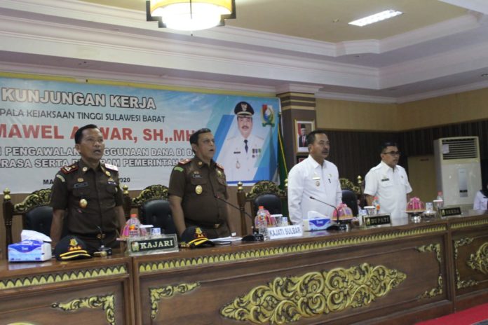 MAJENE, MATALENSA. ID-,Kepala Kejaksaan Tinggi Sulbar Darmawel Aswar.SH.MH,melaksanakan kunjungan kerja di kabupaten Majene dalam rangka melaksanakan program kegiatan penyuluh Hukum para kepala desa serta para lurah,di ruang pola assamalewuang kantor bupati Majene Rabu(5/2)