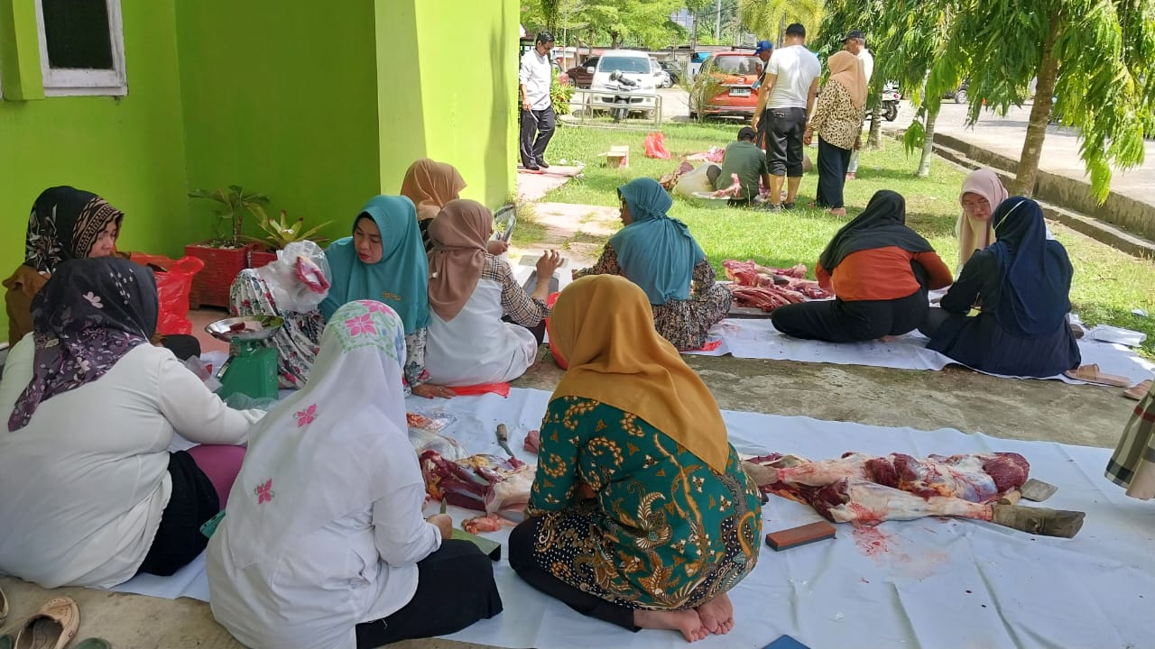 “Sesuai syariat islam, sepertiga buat yang kurban, sepertiga buat kerabat, keluarga yang ada di kantor serta fakir miskin,”ujarnya.