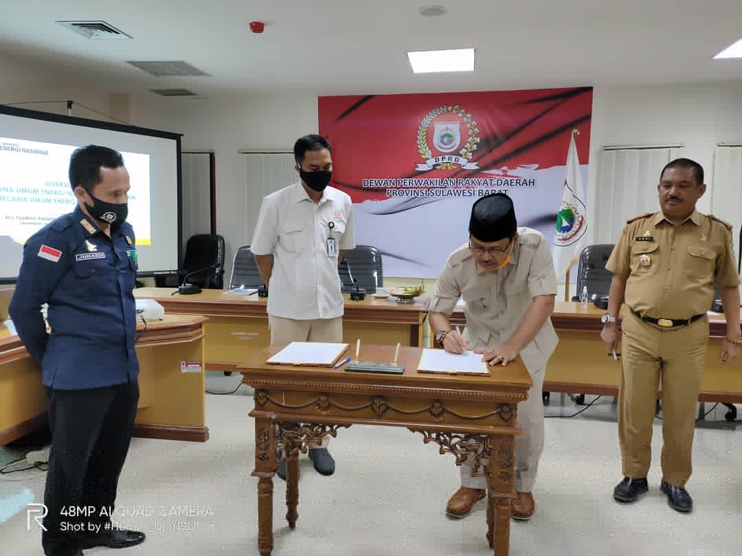 MAMUJU, MATALENSA.ID – Dewan Perwakilan Rakyat Daerah dalam hal ini, Badan Pembentukan Peraturan Daerah (BAPEMPERDA) Provinsi Sulawesi Barat menerima Kunjungan Dewan Energi Nasional (DEN) dalam rangka penandatanganan Berita Acara Persetujuan Substansi terhadap Ranperda tentang Rencana Umum Energi Daerah (RUED) Provinsi Sulawesi Barat di Ruang Rapat Pimpinan, lt 2 Gedung DPRD Provinsi Sulawesi Barat, Senin (19/10).