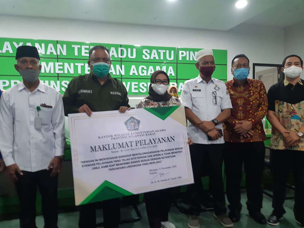MAMUJU,MATALENSA.ID—Dalam rangka membangun Reformasi Birokrasi (RB) menuju Zona Integritas (ZI), Kantor Wilayah Kementerian Agama melalui Pokja ZI RB, secara khusus Pokja 8 menyelenggarakan sosialisasi dan penandatanganan berita acara kesepakatan penetapan standar pelayanan Kantor Wilayah Kementerian Agama Prov. Sulawesi Barat, Rabu (11/11)