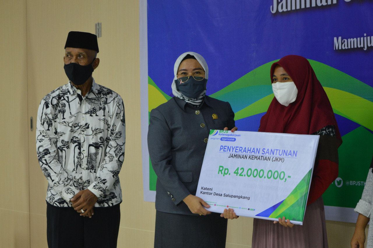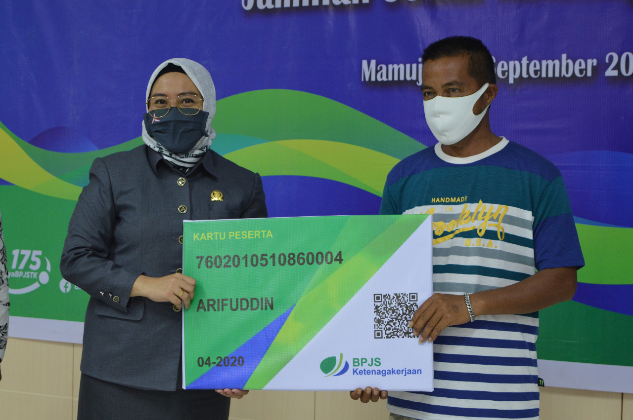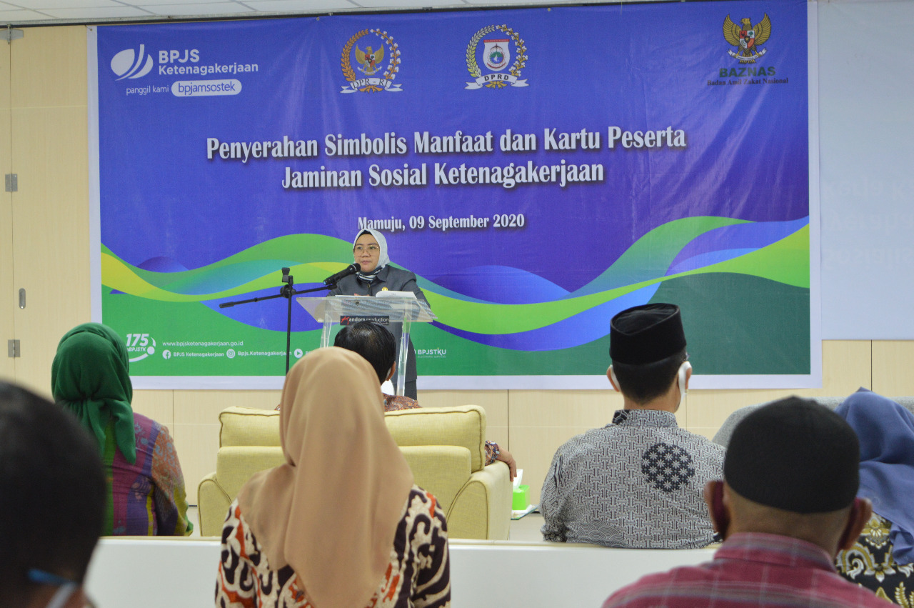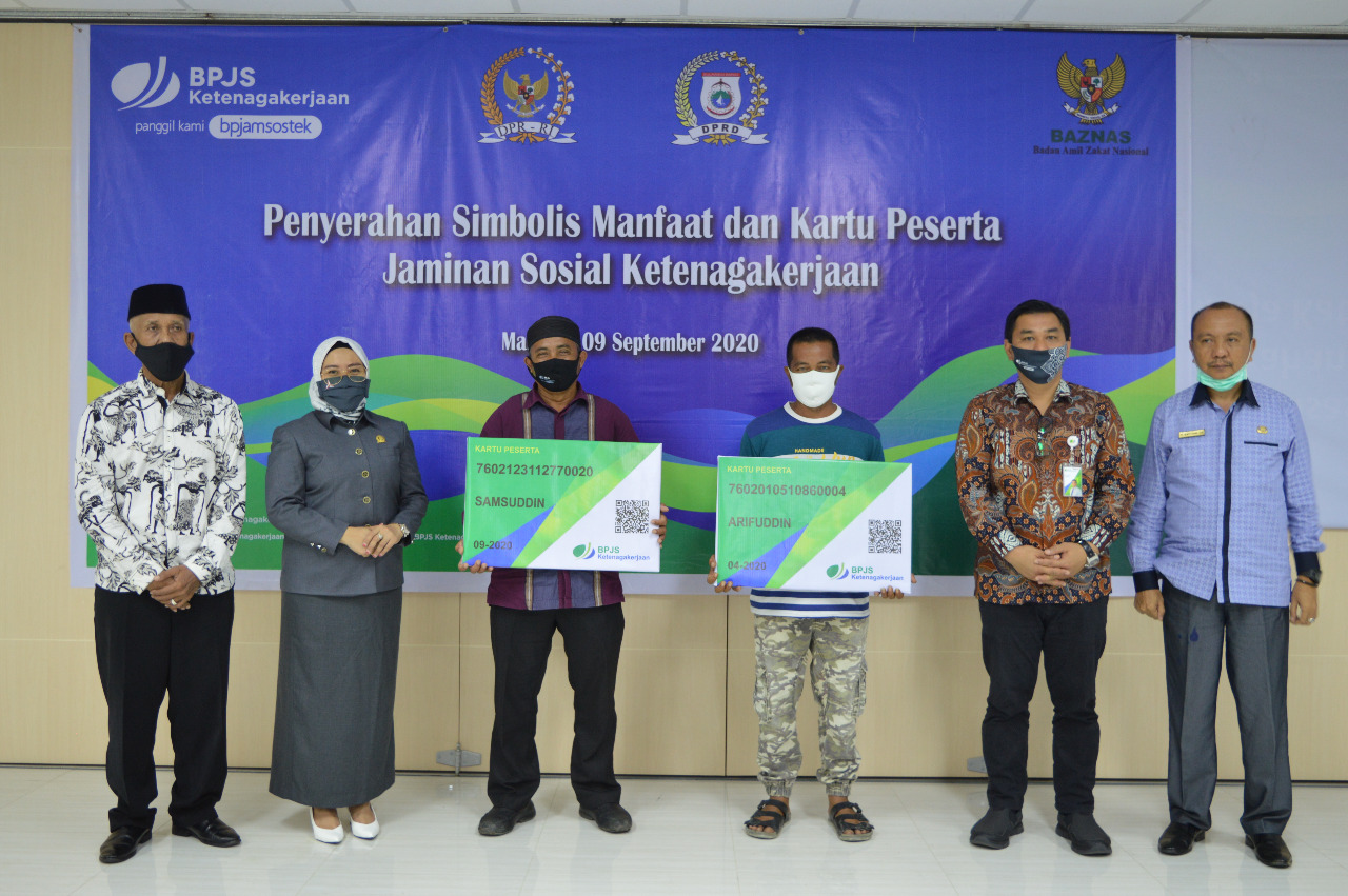 MAMUJU,MATALENSA.ID–Penyerahan Kartu BPJS Ketenagakerjaan bagi pekerja miskin yang terdaftar melalui Badan Amil Zakal Nasional (BAZNAS) Provinsi Sulawesi Barat dihadiri oleh Ketua DPRD Provinsi Sulawesi Barat Hj. Sitti Suraidah Suhardi, Kepala Dinas Tenaga Kerja Daerah Provinsi Sulawesi Barat H. Bahtiar HS, SE., MH, Ketua Badan Amil Zakat Nasional Provinsi Sulawesi Barat H. Asraruddin, Kepala Kantor BPJS Ketenagakerjaan cabang Sulawesi Barat Imam M. Amin dan peserta kegiatan sosialisasi Program Jaminan Sosial Ketenagakerjaan bertempat di Ruang Rapat BPJS Ketenagakerjaan