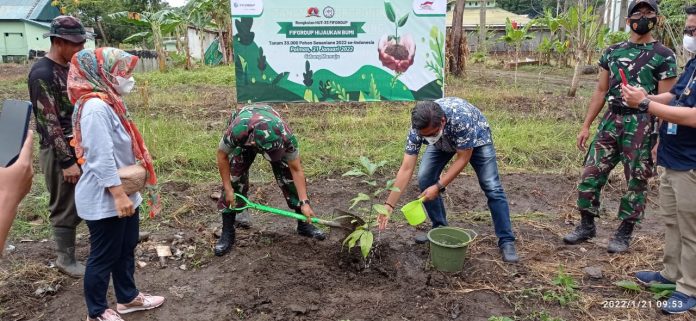 POLMAN, MATALENSA.ID- Untuk penghijauan dan peduli lingkungan, Kodim 1402/Polman bersama FIF Grup Cabang Polman, Tanam Puluhan pohon buah di Sekitar Makodim, Jumat (21/01/2022)