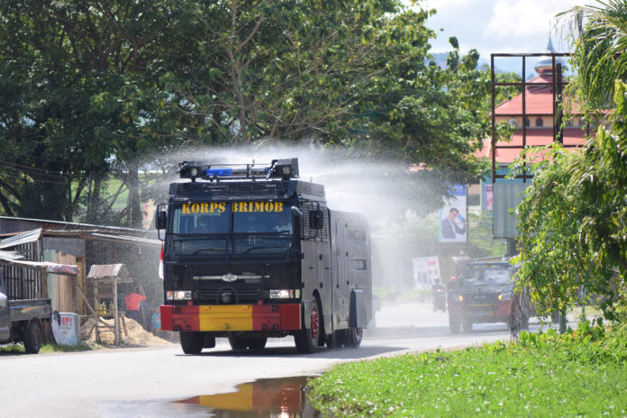 “Penyemprotan ini akan dilakukan ditempat-tempat umum seperti pasar, tempat ibadah, kantor pelayanan dan sebagainya dengan mengerahkan seluruh peralatan Polri khususnya mobil water cenon,”tutur Kabid Humas.