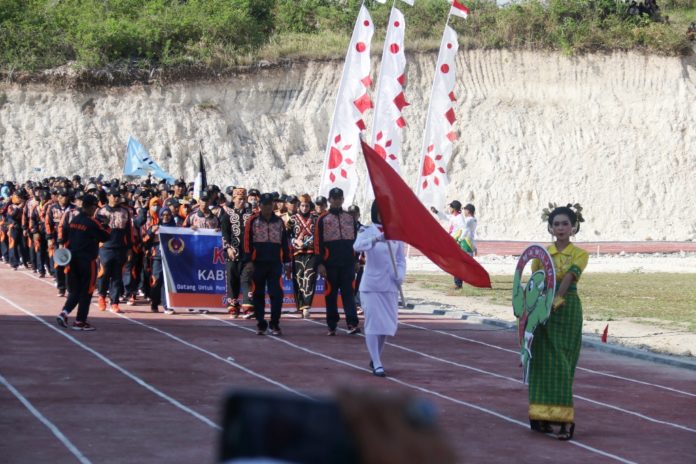 MAJENE,MATALENSA.ID—Kabupaten Mamuju menjadi kontingen pertama yang membuka parade pada pembukaan Pekan Olahraga Provinsi (Porprov) III Sulawesi Barat, Senin (12 /11),yang di berpusat di Sport Center Majene yang sekaligus menjadi tuan rumah pada Pekan Olahraga Provinsi III Sulbar.